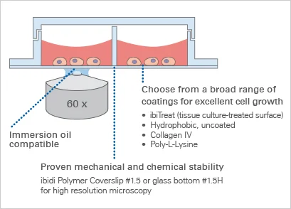 - ibiTreat (tissue culture-treated) surface for optimal cell adhesion