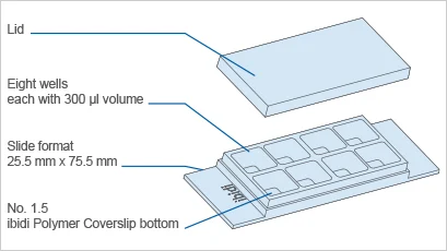 - Chambered coverslip with 8 independent wells and a non-removable polymer coverslip-bottom