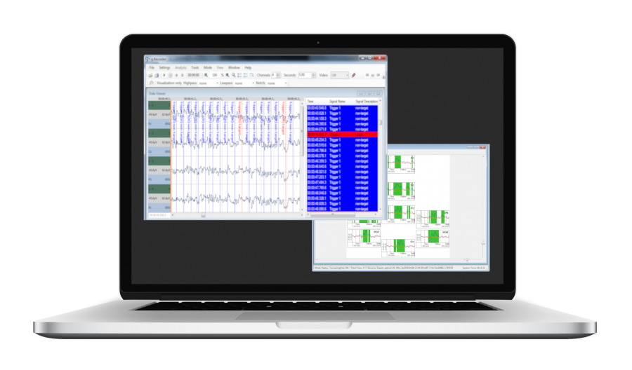 g.Recorder supports all g.tec biosignal acquisition devices and provides tools for easy configuration and setup, data visualization, storage, and review. Signals and parameters can be checked in the display mode, stored to disk, and later reviewed in the offline/replay mode. With the Professional version of g.Recorder, video data can also be stored simultaneously with the biosignals, and the following parameters can be computed online: