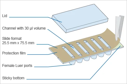 - Specifications identical to those of the µ-Slide VI 0.4, except that it has no bottom